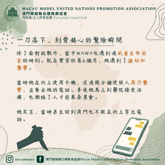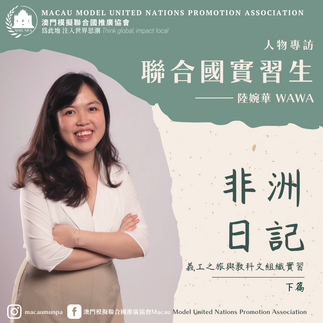 聯合國實習生專訪🇺🇳MMUNPA2022年2月24日讀畢需時 1 分鐘琴日就分享咗wawa嘅義工經歷,今日我地將會繼續分享wawa係聯合國教科文組織中非辦事處實習嘅點滴😍一齊嚟睇吓啦👉🏻(本次專訪由中學生幹事計劃學員採訪、撰文及設計,如欲成為會員,歡迎點進專頁簡介之連結查看更多詳情)陸婉華Wawa,一個土生土長的澳門人。中學生活的尾聲,她收到來自北京的錄取通知書,踏上了異地求學之路。在北京讀書的那些年,她獲得前往英國交流兩年的機會,並為她的生命帶來了不一樣的變化。